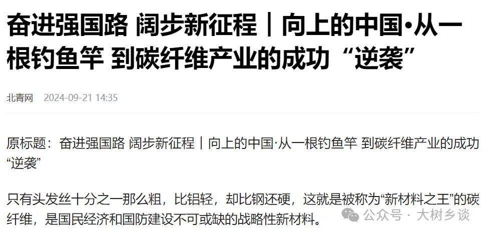 但在中国不一样,正如前面说的“产能过剩”,各行各业都普遍过剩,这本就是市场经济的必然现象,代表更接近西方经济学的充分竞争。而因为中国制造业包罗万象,每时每刻都在诞生大量新需求,因此一项新技术、新产品研发所需要的基础条件,很可能在激烈的市场竞争中,已经在满足其他需求时解决了。比如原本钓鱼行业大量使用的碳纤维。